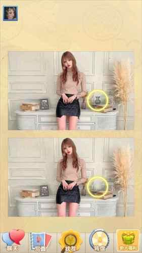 1、女神来找茬是时下最热门的休闲找茬游戏,玩法简单有趣,只要找到两幅图中的所有不同点即可通关。
