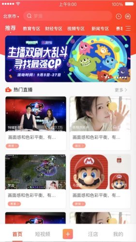 以教育直播频道,公益直播频道,优选频道,商业直播频道,生活正能量直播频道为核心内容,