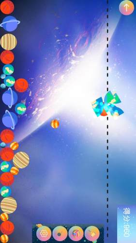 一款休闲益智游戏,玩家在游戏中控制各种不同的星球掉落,相同星球碰撞后和会合成新的星球,合成越多得分越高,游戏玩法很简单,容易上手,还能查看自己的得分排名。