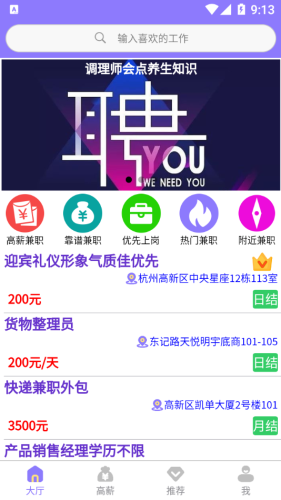 优先上岗:主要是一些着急聘信息,着急找活来这里错不了。