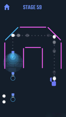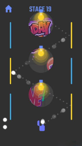 2、点燃灯泡游戏玩法十分的简单,你只需要点击屏幕,快速的让小球躲避障碍物即可;