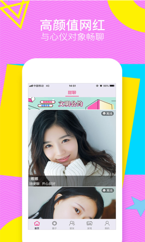 甜聊相亲app是一款聊天交友社交软件,用户可以通过甜聊app进行聊天交友互动,认识到更多的异性朋友,找到自己中意的那个TA,告别单身。