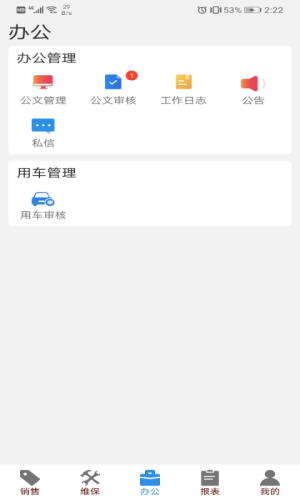 维保:售后在线接车,结算优惠审核,进度管理,以及相关单据审核。各业务板块报表、集团报表。