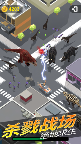 恐龙大作战游戏iOS版是一款极致爽快的恐龙战斗游戏,更多不同的杀戮战场,极致残酷的战车与你一起参与战斗。绝地求生的玩法,超级多的恐龙来袭,入侵到城市,你需要驾驶汽车来射击它们,更多酷炫武器等你获得。