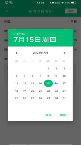 并统计出各个消费类型今日、本周、本月、今年饼图数据,使用户清晰统计出开支数据及那个消费类型支出的最多。