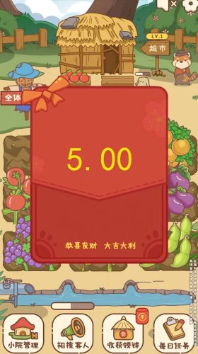 无忧小院,一款有红包可以拿的田园经营小游戏,在自己的小农院中种菜,让小动物们来采购,只要有收获,都能够兑换现金红包,体会佛系游戏的最新玩法,和小动物们一起奔向富裕吧。