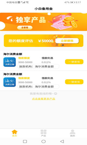 小白备用金App,在您缺钱的时刻给予您帮助,有一份备用金可以防止因即时用钱导致的不知所措,超高额度贷款简单,整个操作线上完成,方块速度快。