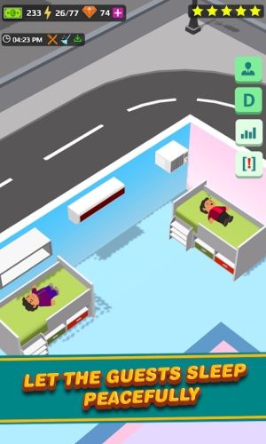 2、游戏中玩家需要好好建设自己的酒店,一点点升级壮大自己的规模,提高楼层数增加房间数量,这样就可以容纳更多的客人。