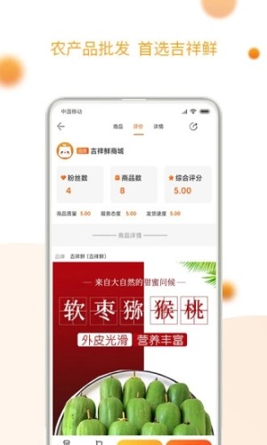 《吉祥鲜》实自营、多商户入驻的电商平台模式,解决中小型批发的农产品生鲜采购需求。是一个基于移动互联网技术、深耕农产品产地、提供产业链服务、提升农业生产水平和促进农产品流通效率的电商平台。