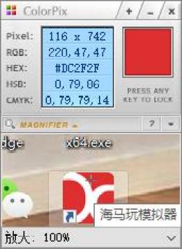 1、点击放大镜,会在软件下半部分以放大的形式显示出来,方便精确的取色。