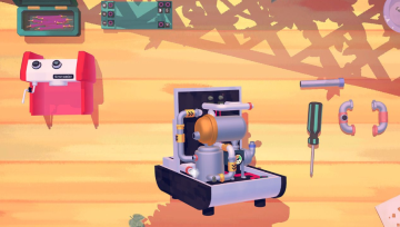 游戏中的工作台就拥有这样温暖的光影,更幸运的是,这个工作台整整齐齐,要处理的部件放在中间,不处理时就按部就班地飞回它应在的位置,关卡中,拆解物品的难度和喝下午茶相比只聊胜一筹,玩家不会有任何的思考负担,更像是在玩过家家用的那种可拆卸模型。当然,这也意味着机械结构的复杂度无法满足热爱解谜的玩家。