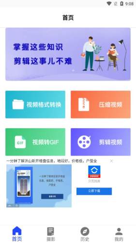 短视频剪辑帮手是一款专业的视频编辑剪辑工具,使用方法简单,可以帮助用户轻松制作短视频,在这里包含了压缩视频、剪辑视频、视频格式转换和视频转GIF等功能,还有剪辑小知识,即可安装使用哦!