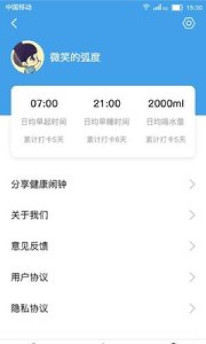 每个人能够直接分享自己的健康闹钟,可以让亲人朋友监督自己每日打卡;