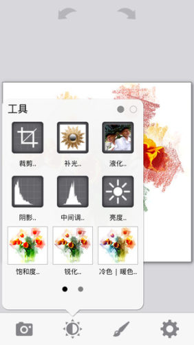除了美化照片工具,还有绘画画笔,让你做出照片的抽象绘画演绎。你可以选择一个笔刷,通过复制或绘画,拷贝图像特征。