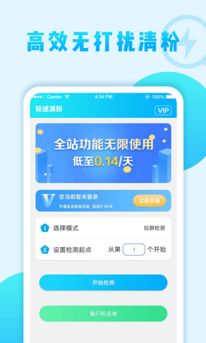 3、【简单易用】软件使用轻松便捷,打开软件轻松一步即可清理您需要清理的僵尸粉