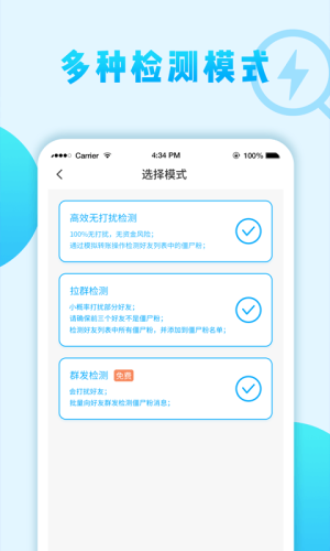 2、【高效无打扰】高效无打扰检测僵尸粉,不发消息,对好友无打扰,让您在零打扰情况下完成僵尸粉检测