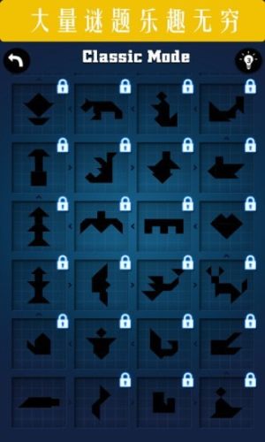 三角拼图七巧板:是一款极其有趣的休闲益智手机游戏,三角拼图七巧板采用简洁清新的游戏风格营造轻松诙谐的游戏氛围。丰富的游戏场景和游戏关卡给玩家畅爽游戏体验,更有特色剧情副本等你来挑战。