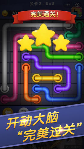 炫酷的水管皮肤,配上游戏音效,别有一番趣味,水管接通之后的通关效果让人神清气爽。