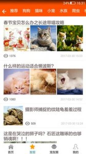 2、涵盖宠物资讯、宠物护理、宠物健康、宠物讨论、宠友圈、宠物商城多个领域。
