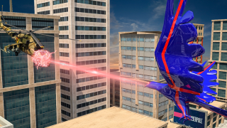 5、激活老鹰飞行模式并观察翅膀出来。将飞行机器人转变成具有现代拍摄武器的机器人老鹰,这种武器将以超级击球摧毁机器人汽车。将机器人雄鹰英雄转化为飞行怪物。追逐机器人敌人造成未来城市的破坏,并以超级罢工阻止他们。