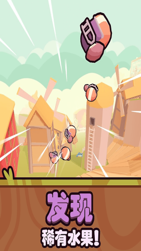3、使用简单的滑动控制朝着不同的山地景区发射您的水果——滚动、跳跃和翻转得越远,赚到的钱就越多!
