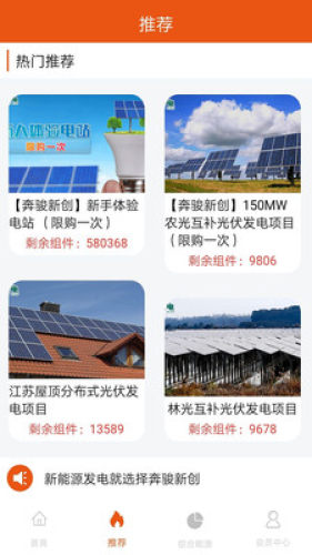 奔骏新创app,新能源服务平台,发布行业最新资讯信息,推荐优质项目产品,购买电站,轻松赚钱,享受便捷的电站管理服务,助力新能源行业发展。