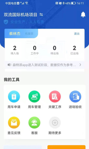 设备租赁单位提供司机和设备对接,实现工作流程线上化的管理