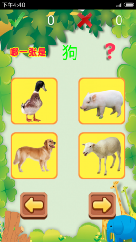 2、在练习模块里还会随机出现之前学过的动物,加深印象