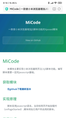 一款使小米浏览器增加JS脚本功能的Xposed模块。
