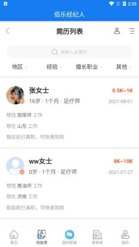 2、十分的贴心智能,用户还可以使用软件的筛选功能,对于地区、经验、擅长的职业以及其他的各项信息进行筛选;