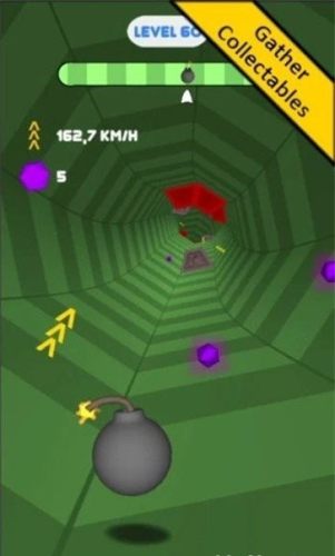 3、游戏在操作上是没有任何难度的,单手就可以操控炸弹在隧道里按不同的线路前行。