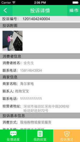 注册商家可以通过此应用快捷便利地处理消费者的投诉。