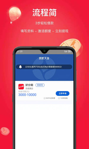 纯线上申请,1分钟完成全部申请流程,快至10分钟极速下款!