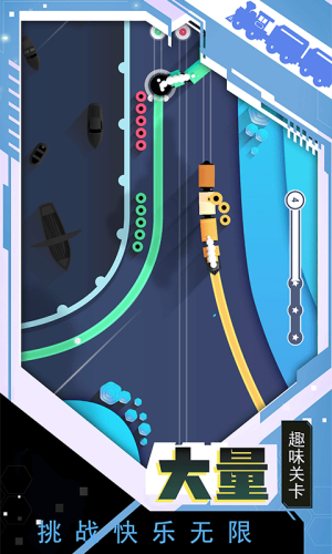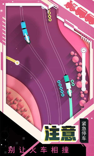 趣味性十足的闯关小游戏,游戏里面有着很多不一样的铁轨,蜿蜒曲折,游戏玩家必须点一下显示屏来指引列车分开行车,让列车能够安全性的抵达终点站来进行挑战,也要当心观查每一辆列车的剩余油。