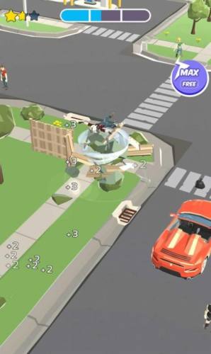1、操控龙卷风横行无阻,任何的物品都能摧毁,不断突破丰富的关卡;