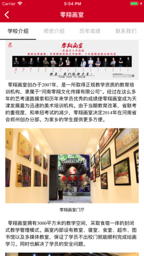 零翔画室APP为家长提供了解我校的先进教学理念以及强大的师资力量的功能,以及为家长和学生提供在线咨询等功能,