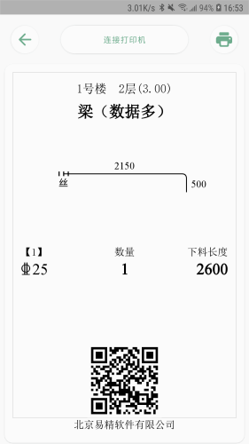 并且可以通过手机连接蓝牙或wifi打印机进行料单、料牌、绑扎料牌的打印。