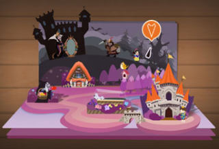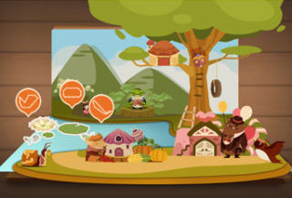 在进入游戏操作界面之后,一个个立体的魔法童话书呈现在眼前,背景处还有一些童话场景原画的增添,使其更具神秘感。在点开魔法书之后,将会出现一副由纸张整合而成的立体童话场景,游戏的画面也充满着童话般的色彩,远处的山丘连绵不绝,各种可爱的卡通小屋和花草,以及那蔚蓝天空上飘着的朵朵白云,看起来真是赏心悦目。