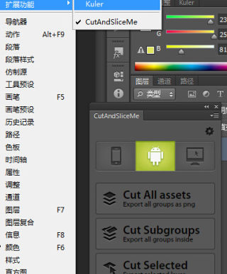 重启ps,然后在窗口->扩展功能 下勾选CutAndSliceMe就可以看到该插件了