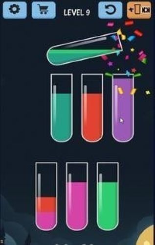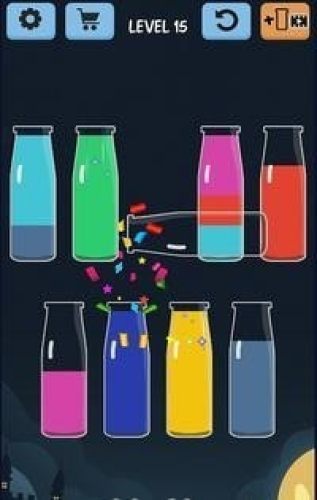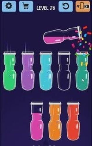 1、简单的操作玩法模式,你可以控制水瓶来倒入不同的液体,让液体变换不同的颜色。
