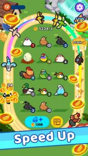 放置鸟乐园是个合成收集小鸟的轻松游戏,放置鸟乐园游戏中有各种鸟类,让鸟儿跑圈来为你赚钱,可以完全自动放置,来生成想要的钱。