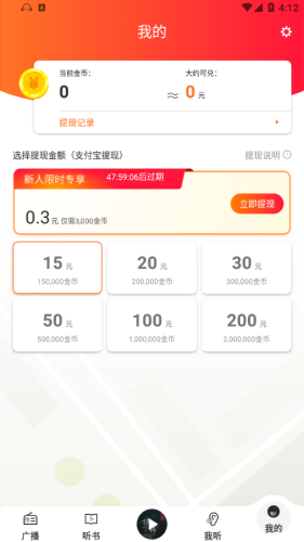 看书太累,不妨来广播收音极速版试一试听书,关键还能赚钱!