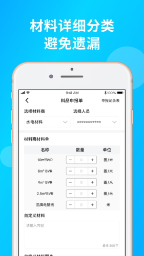 公司展示,工地展示,材料申报,用材记录,杜绝材料浪费。