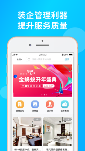 装修帮手是一款好用的装修服务软件,装修帮手是企业的装修利器,可以提升企业的服务质量,精细化人员管理,办公更流畅,精准获客渠道,为用户输送有效装修资源。