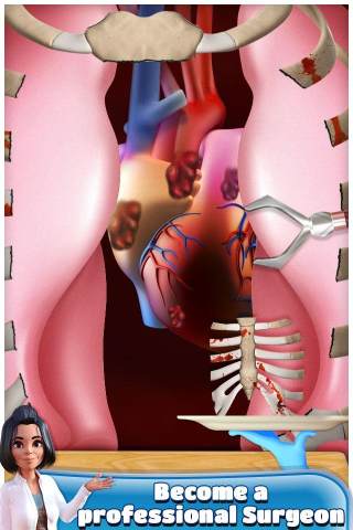 2、令人震惊的图型与极端化疯狂的手机游戏玩法,开胸和心脏病手术仿真模拟。