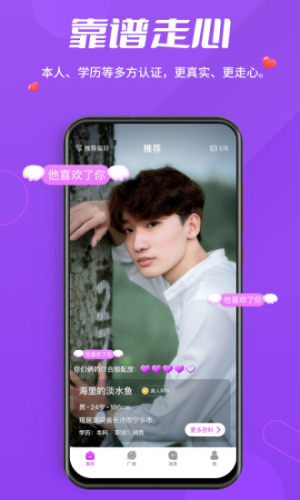 【靠谱走心】本人认证、学历认证、收入职业房车等信息详细,7*24小时人工与机器双重审核,确保每一位用户信息真实可靠。