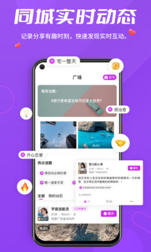 【同城实时动态】记录分享有趣时刻,快速发现实时互动。