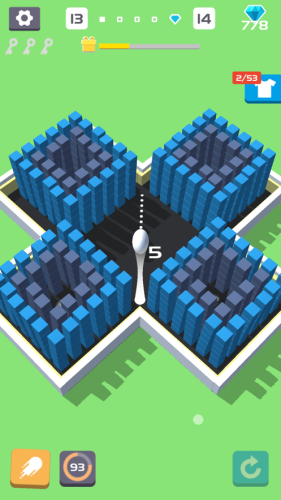 5、操作小球,瞄准目标,蓄力、发射!摧毁关卡中所有的物体!