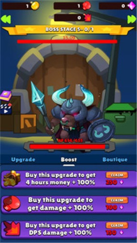 1、游戏的玩法轻松有趣,通过挂机自动战斗的方式即可轻松击败敌人完成关卡。