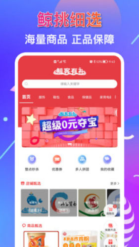 挑选心意的商品,参与幸运拼团活动,拼中发货、未拼中即时退款,并瓜分鲸币。